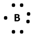 Elektron terakhir unsur A memiliki nilai bilangan kuantum n = 3, l = 1, m = 0, s = +1/2. Unsur A berikatan dengan unsur B membentuk senyawa kovalen AB4. Maka struktur Lewis unsur B adalah….