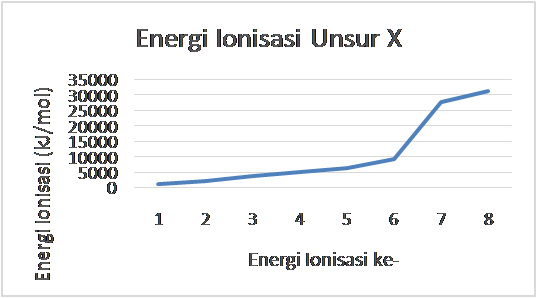 Kurva di atas adalah kurva energi pengionan dari suatu unsur golongan utama. Berdasarkan kurva tersebut, dapat disimpulkan bahwa unsur ini cenderung membentuk ion yang bermuatan…